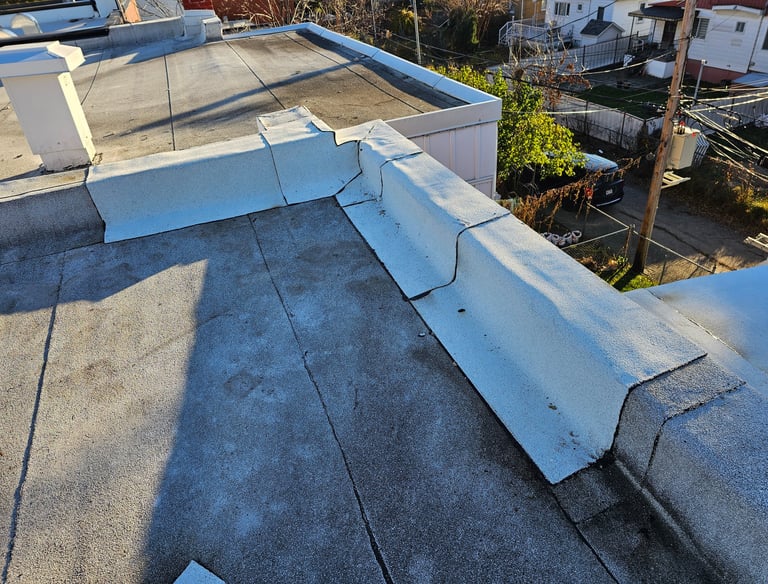 Replacing drain, vents, skylights, and all custom flashings.