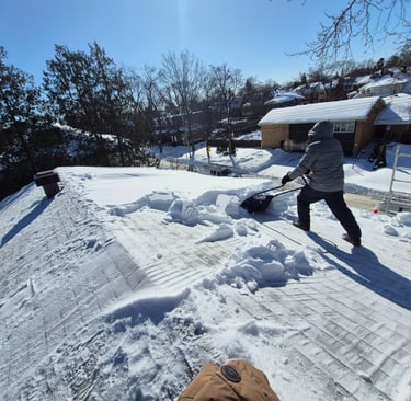 Déneigement professionnel : Notre équipe utilise des méthodes sécuritaires et efficaces pour retirer la neige de votre toiture, tout en protégeant les bardeaux et les matériaux contre les dommages.
